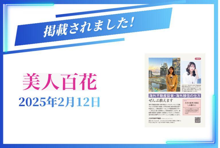 宮脇さきが、海外不動産投資家・海外移住コンサルタントとして、2025年2月12日発売の雑誌『美人百花 3月号』に掲載されました。