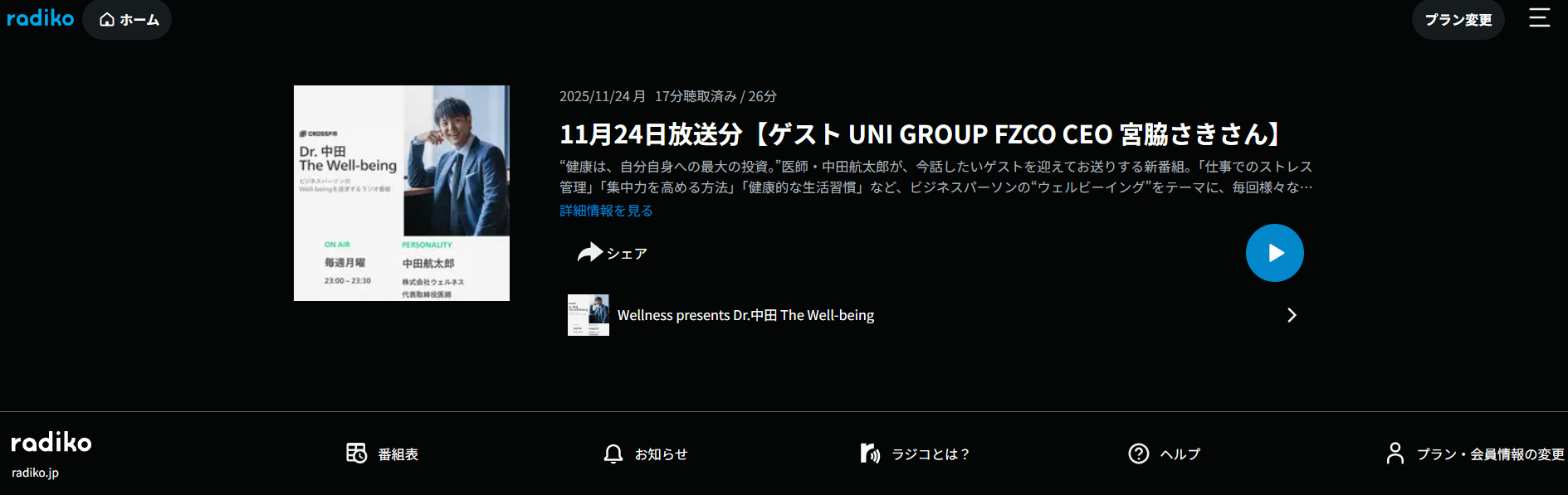 CROSS FMの「Dr.中田 The Well-being」に出演しました【2025年11月7日】