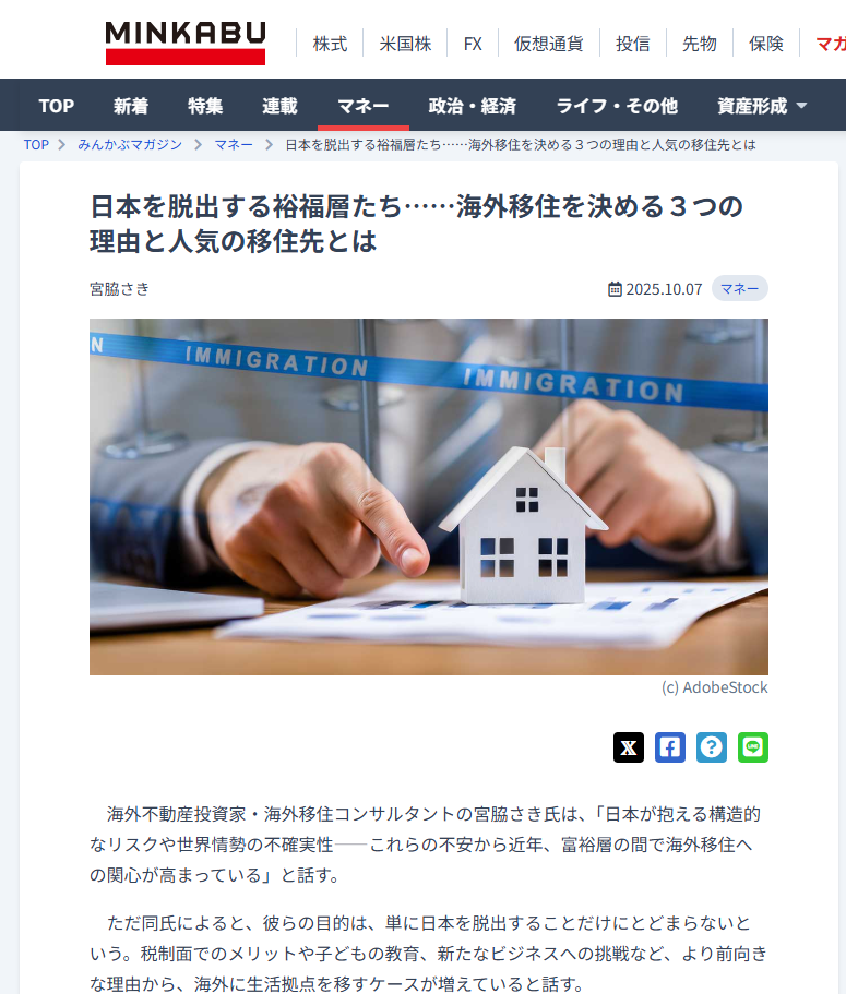 当該記事では、日本の富裕層たちが「海外移住を決める理由」、「海外移住をすることで得られるメリット」、また富裕層ではない一般層の人たちでも、工夫次第で海外移住ができることについて解説しております。