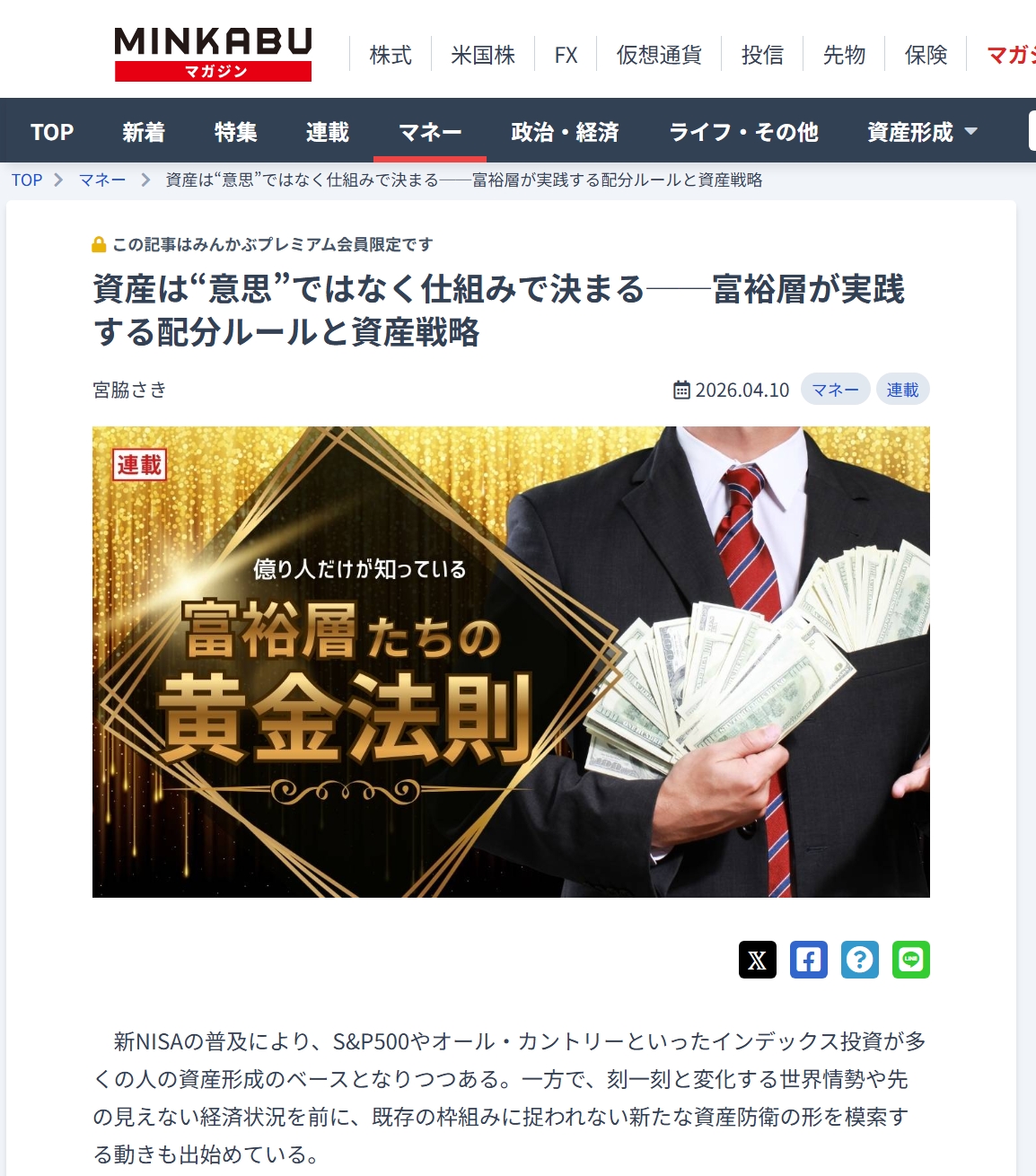 20代で元手ゼロから純資産4億円を築き上げた宮脇さきによる、富裕層が実践する資産配分と仕組みづくりをテーマにした全4回連載の第2回です。